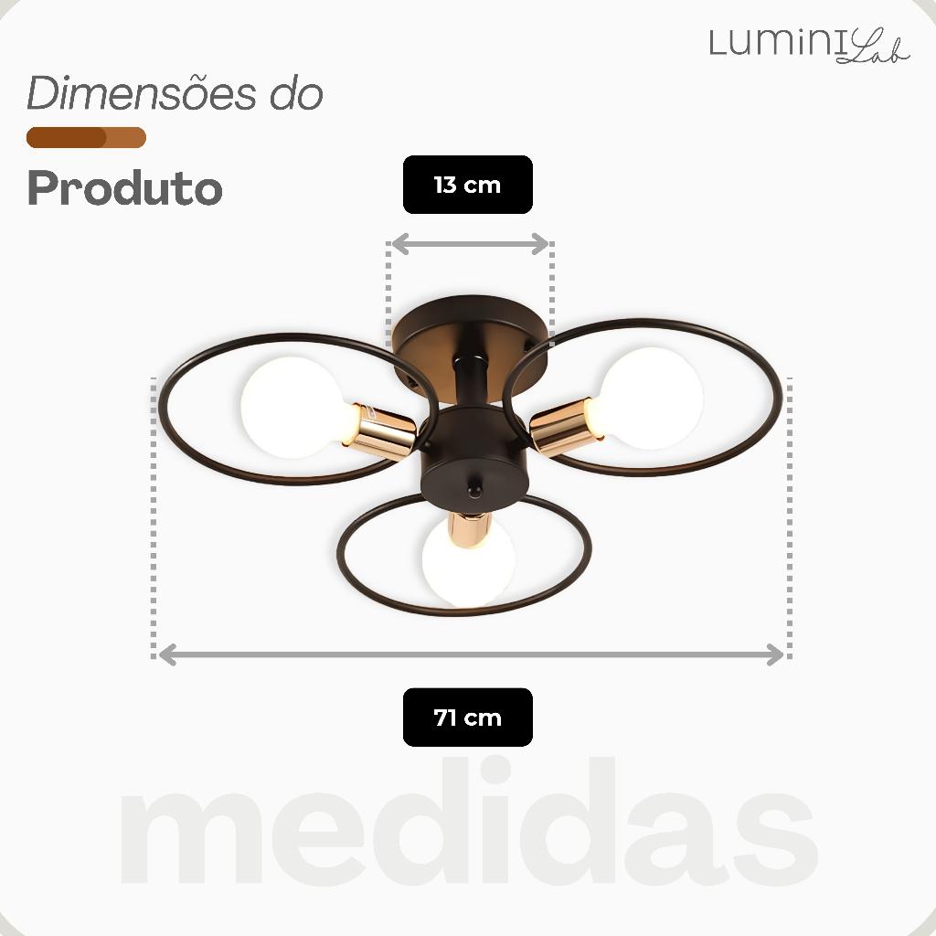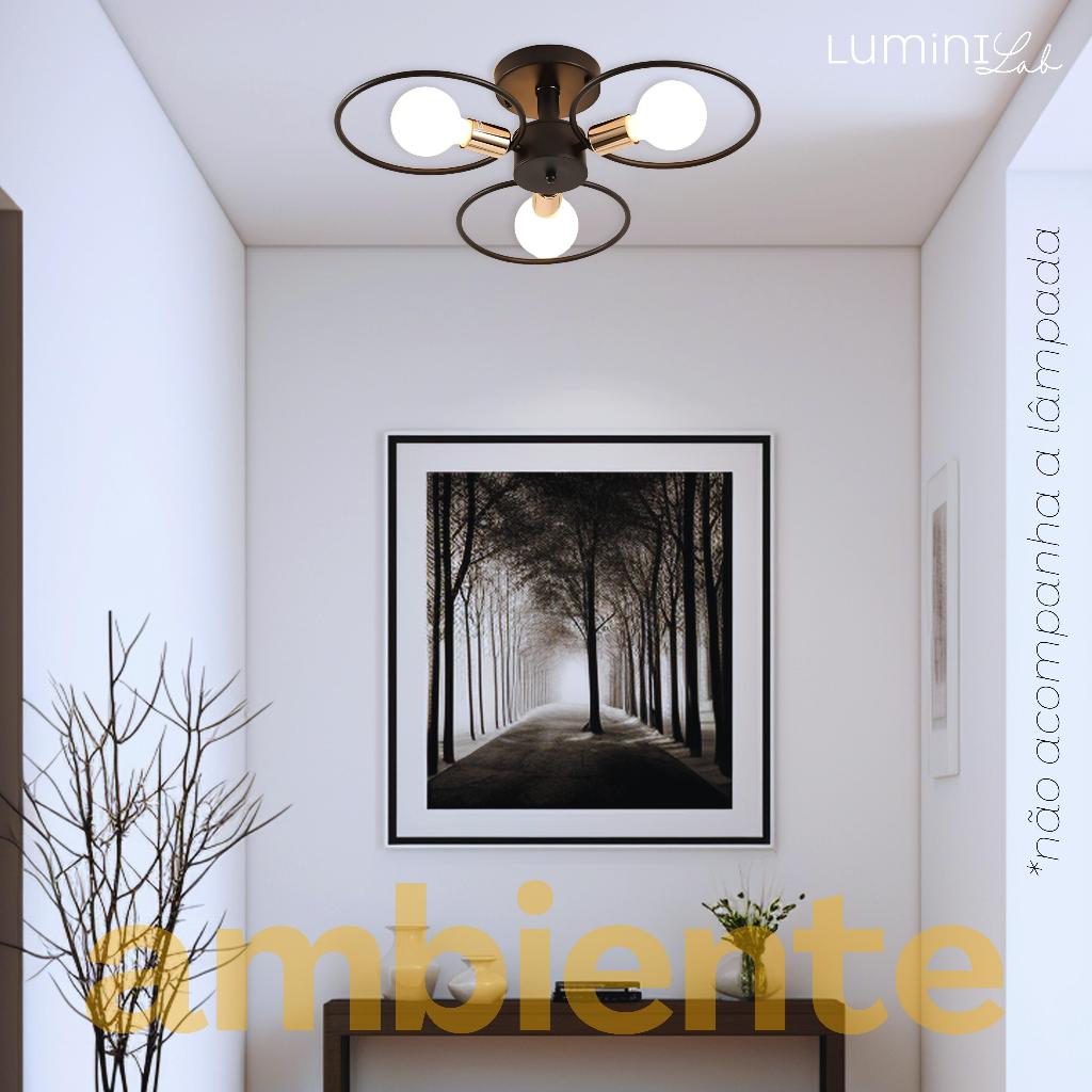Plafon Tres Arcos Aluminio Teto E27 3 Luzes Lumini Lab